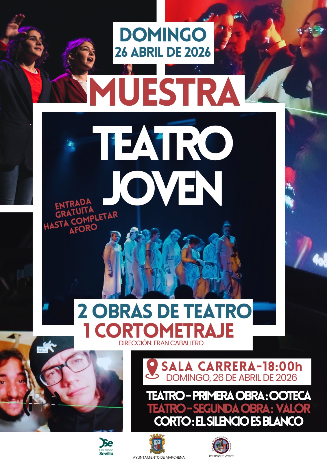 Desde la Delegación de Juventud del Ayuntamiento de Marchena os informamos que el próximo domingo 26 de abril en la Sala Carrera, el taller de teatro joven de Marchena, dirigido por Fran Caballero y dentro del programa Qué Ideamos, financiado por la Delegación de Juventud del Ayuntamiento de Marchena y Diputación de Sevilla, estrenarán las siguientes obras: